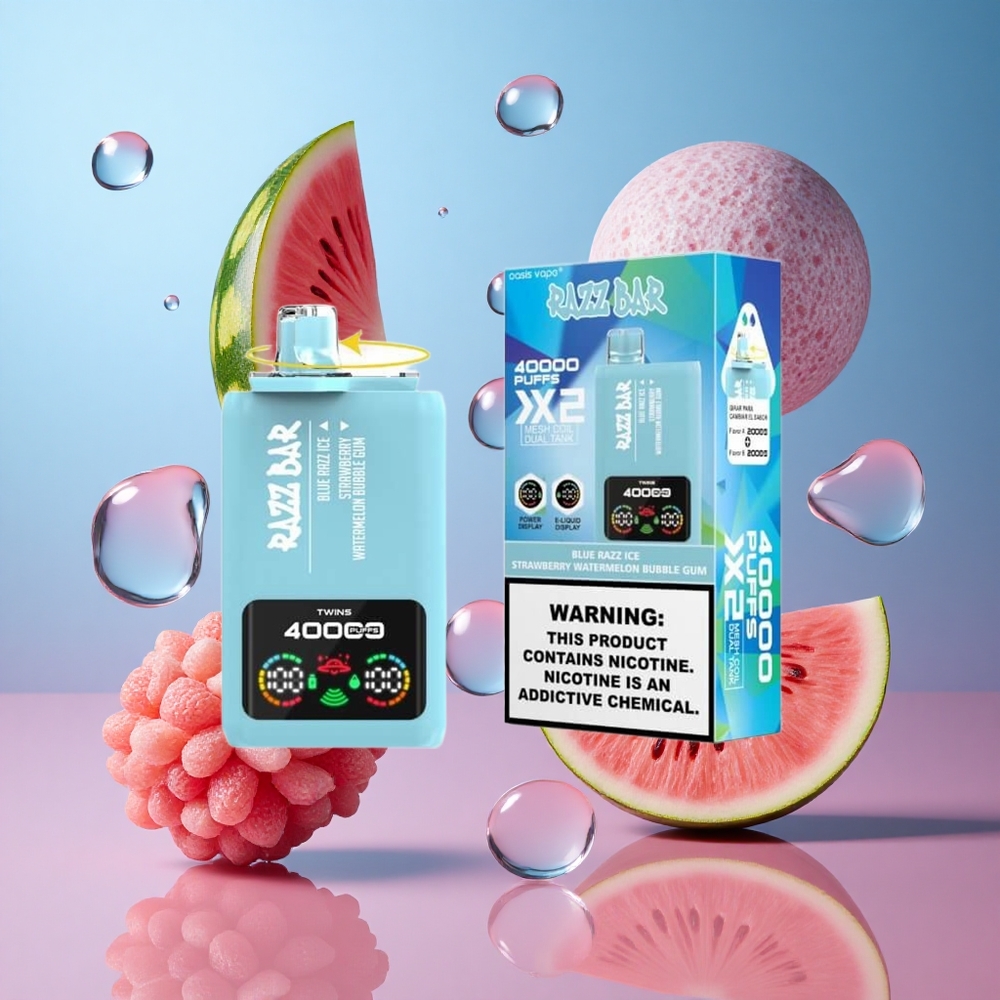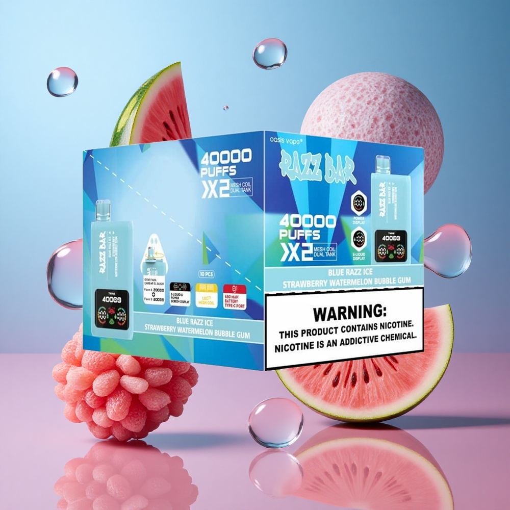 Blue Razz Ice-Strawberry Watermelon Bubble Gum Razz Bar 40000 Puffs Disposable Vape Power Screen Display