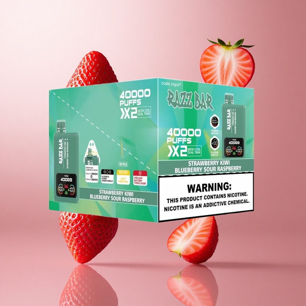 Strawberry Kiwi Blueberry Sour Raspberry Razz Bar 40000 Puffs Power Screen Display Disposable Vape